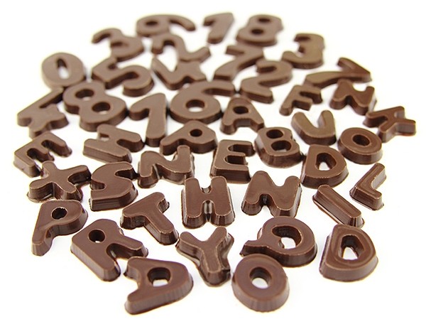 Selection of letters shaped chocolate (Latin or Arabic) to complete Ramadan and Eid symbols